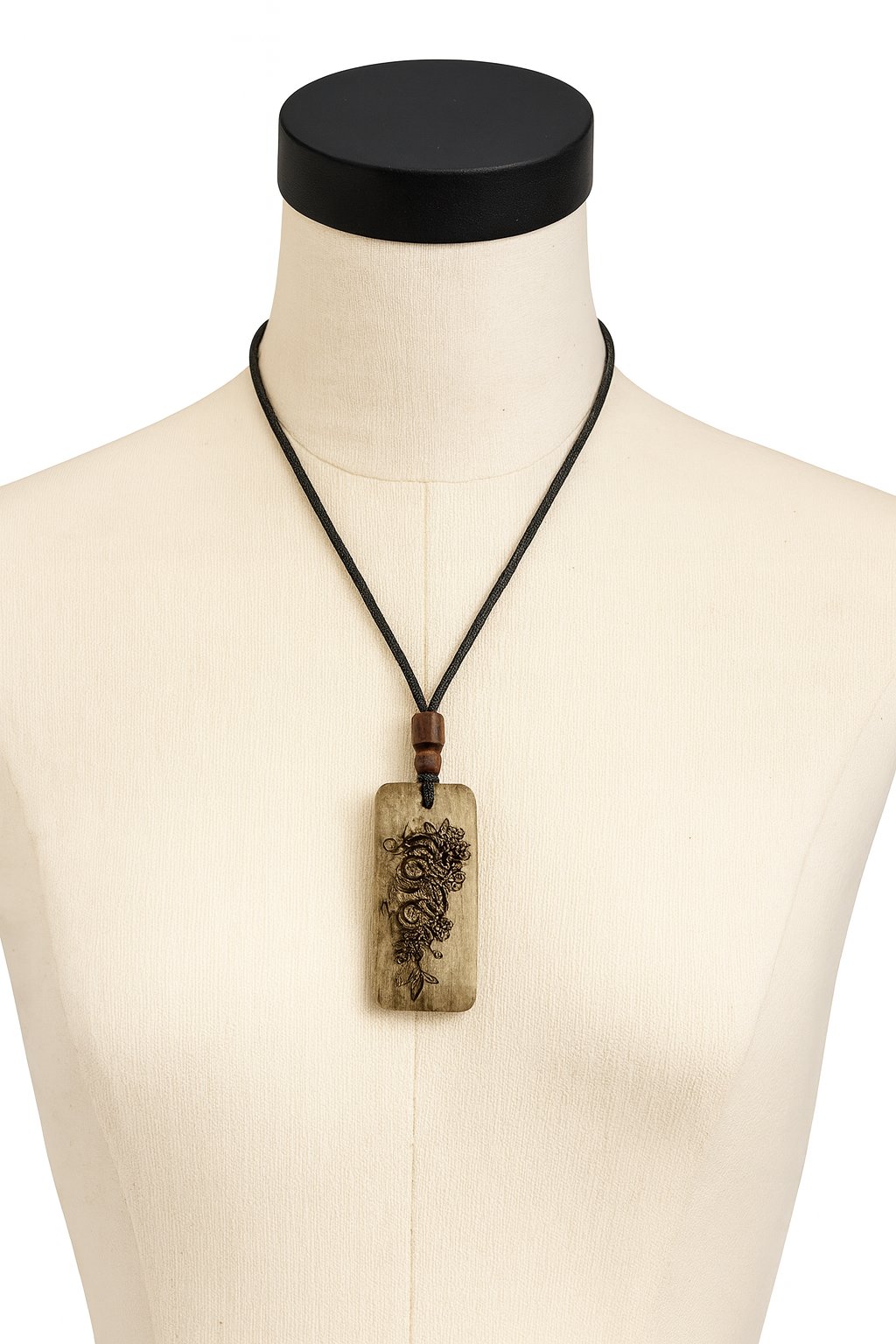 corners, offering a smooth and organic silhouette. - Engraving: The pendant features a deeply