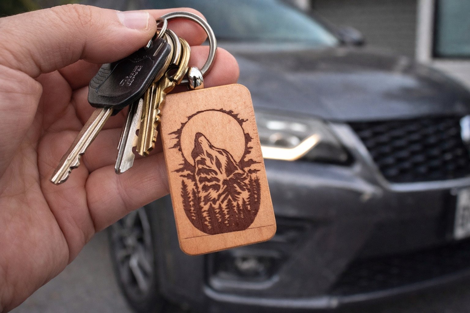 Overall, it’s a simple yet striking wooden keychain that combines functionality with a bold, nature-inspired aesthetic.